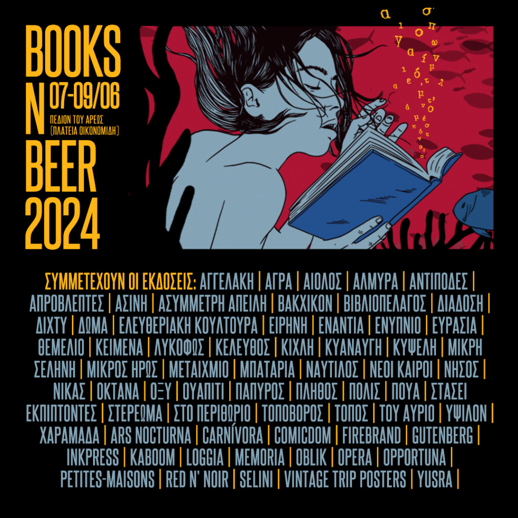 Το books n’ beer 2024 θα διεξαχθεί στην Πλατεία Οικονομίδη, στο Πεδίον του Άρεως στις 7-8-9 Ιουνίου 2024 και με ωράριο λειτουργίας 15:00 με 21:00 την Παρασκευή και 12:00 με 21:00 το Σάββατο και την Κυριακή.
