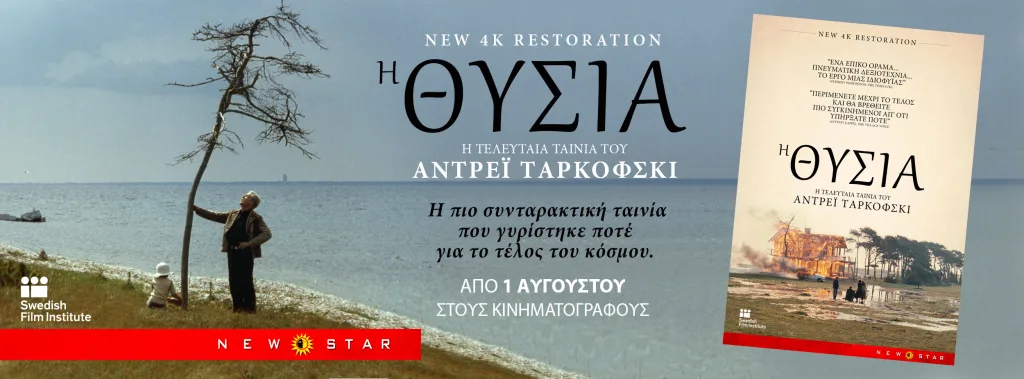Από Πέμπτη 1η Αυγούστου επανακυκλοφορεί σε αποκατεστημένη κόπια (4Κ Digital Restoration) η τελευταία ταινία του μεγάλου δημιουργού Αντρέι Ταρκόφσκι «Η θυσία». Η ταινία βραβεύτηκε όταν κυκλοφόρησε το 1986, με το Μέγα Ειδικό Βραβείο Κριτικών του Φεστιβάλ Καννών. Όταν ο Ταρκόφσκι γύρισε την ταινία, ήξερε ότι ήταν βαριά άρρωστος. Νοσηλευόταν σε ένα νοσοκομείο του Παρισιού με όγκο στον εγκέφαλο. Όμως δεν επέλεξε ένα μικρό θέμα για την τελική του δήλωση.