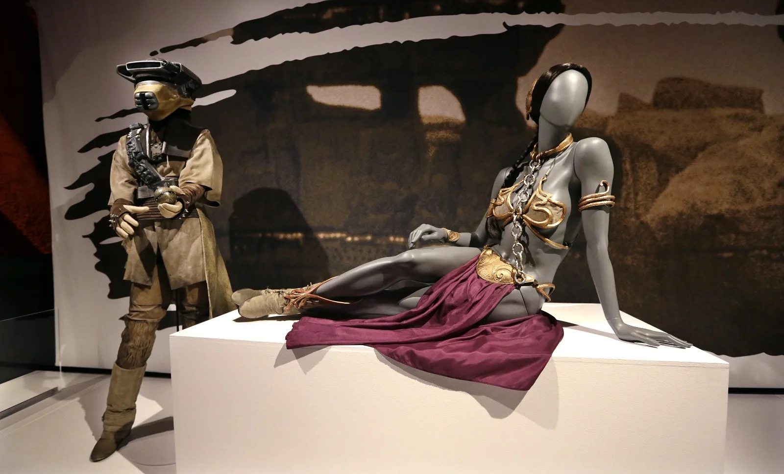 Η στολή, η οποία πωλήθηκε με τα αυθεντικά δαχτυλίδια και τα βραχιόλια της, φορέθηκε από την πριγκίπισσα Λέια, που υποδύθηκε η Κάρι Φίσερ, όταν αιχμαλωτίστηκε από το τέρας, που μοιάζει με γυμνοσάλιαγκα (Τζάμπα Χατ), Jabba the Hutt, και κρατήθηκε αλυσοδεμένη στον θρόνο του στην ταινία «Star Wars: Episode VI Return Of The Jedi» του 1983.