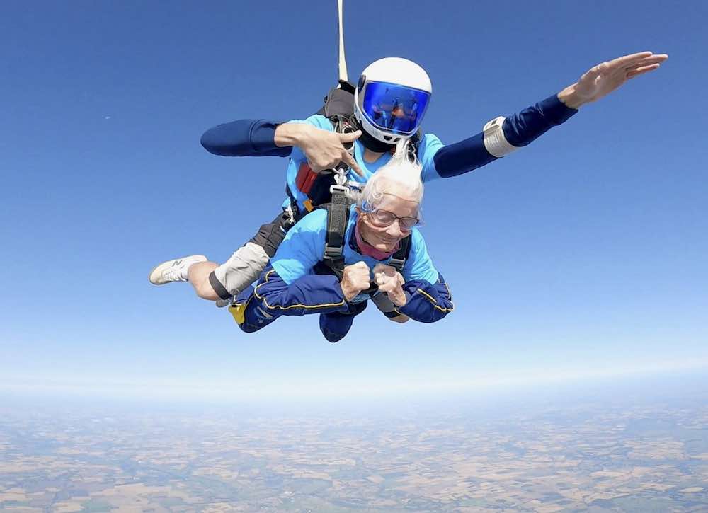 Η τολμηρή Manette Baillie γιόρτασε τα τελευταία της γενέθλια αυτόν τον μήνα με μια πτώση με αλεξίπτωτο στο Beccles Airfield στο Suffolk της Αγγλίας – που ήταν και το πρώτο της άλμα με αλεξίπτωτο.