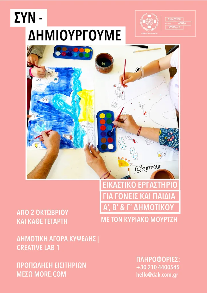 Η Δημοτική Αγορά Κυψέλης παρουσιάζει το νέο εικαστικό εργαστήριο με τίτλο «Συν-δημιουργούμε», όπου παιδιά ηλικίας 6-9 ετών εξερευνούν τον μαγικό κόσμο της τέχνης του σχεδίου παρέα με τους γονείς τους, μέσα από μηνιαίους κύκλους μαθημάτων διαφορετικής θεματικής.
