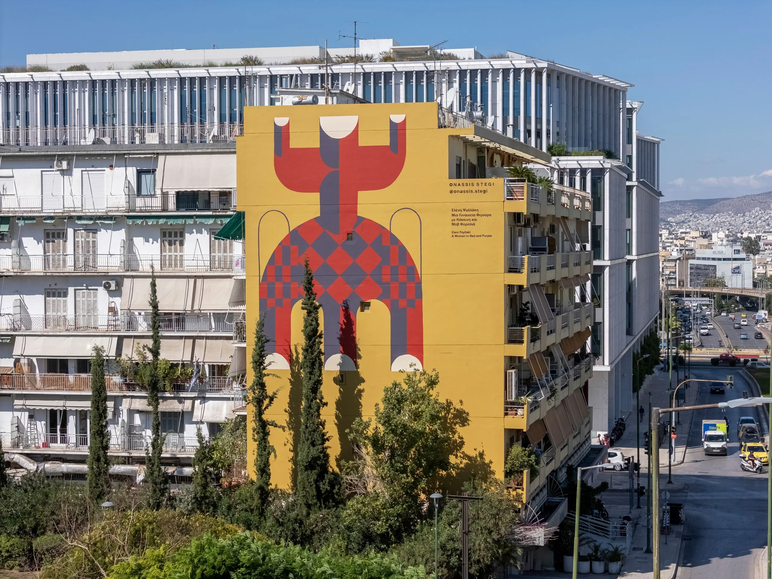 Το Ίδρυμα Ωνάση συνεχίζει να στηρίζει Έλληνες δημιουργούς και να μεταμορφώνει τον δημόσιο χώρο της πόλης. Οι συναντήσεις με σύγχρονους Έλληνες καλλιτέχνες ομορφαίνουν το αστικό τοπίο της Αθήνας, τους τοίχους των πολυκατοικιών της. Μετά το «Φιλί» του Ηλία Παπαηλιάκη στην πλατεία Αυδή στο Μεταξουργείο, το «Κύμα/Νεύμα» της Σοφίας Στεβή στην πλατεία Μαβίλη, το “She Who Protects” του Αριστείδη Λάππα στην Ομόνοια, την in situ εγκατάσταση από νέον «Το Φυλαχτό όλων των Όντων» του Άγγελου Πλέσσα στην Πατησίων και τη χρυσή «Σταγόνα της Γνώσης» της Νικομάχης Καρακωστάνογλου που αιωρείται στον Νέο Κόσμο, η αρχιτέκτονας και ζωγράφος Ελένη Ψυλλάκη δημιουργεί στη γειτονιά της Στέγης, στην οδό Λαγουμιτζή 42, μια τοιχογραφία που φιλοδοξεί να γίνει σύντομα το νέο ινσταγκραμικό τοπόσημο της Αθήνας.