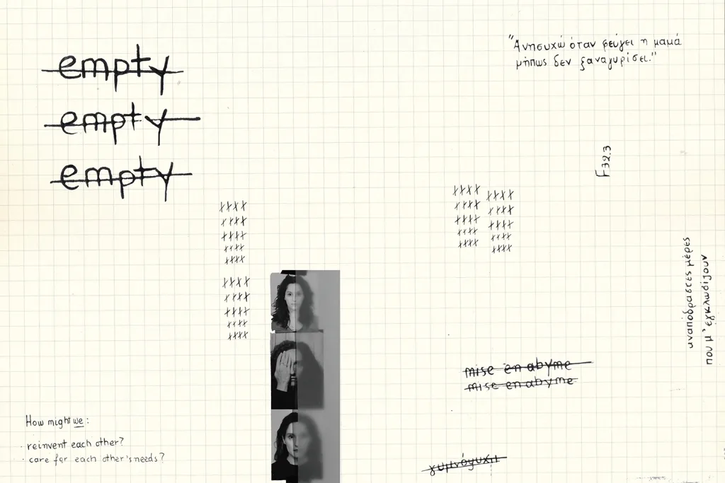 Πάει καιρός, ωστόσο φέτος, το ξαναδούλεψα το υλικό μου με αφορμή μια πολυμεσική ομαδική έκθεση στην Φρανκφούρτη, στην οποία είχα τη χαρά να συμμετέχω. Πήρε, λοιπόν, μια νέα μορφή το βιβλίο καθώς μετατράπηκε σε ένα art object με τη μορμή ενός φακέλου, που περικλείει έγγραφα και φωτογραφίες, προσκαλώντας την επισκέπτρια και τον επισκέπτη να το εξετάσουν, να του αφιερώσουν χρόνο και σκέψη.