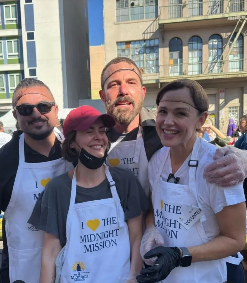 Ο ηθοποιός του Gone Girl και η ηθοποιός του 13 Going on 30, και οι δύο 52 ετών, χώρισαν το 2015 μετά από δέκα χρόνια γάμου. Έχουν τρία παιδιά: τη Violet, 18, τη Seraphina, 15 και τον Samuel, 12. Για την πρώτη Ημέρα των Ευχαριστιών ο ηθοποιός Ben Affleck συναντήθηκε με την πρώτη πρώην σύζυγό του Jennifer Garner για να παρευρεθεί σε μια φιλανθρωπική εκδήλωση με τα παιδιά τους. Το πρώην ζευγάρι φόρεσε δίχτυα στο κεφάλι και ποδιές για να βοηθήσει την οργάνωση The Midnight Mission ετοιμάζοντας χιλιάδες δωρεάν γεύματα στην κοινότητα των αστέγων στην περιοχή Skid Row την Ημέρα των Ευχαριστιών. Μαζί τους ήταν και η Sarah Paulson.