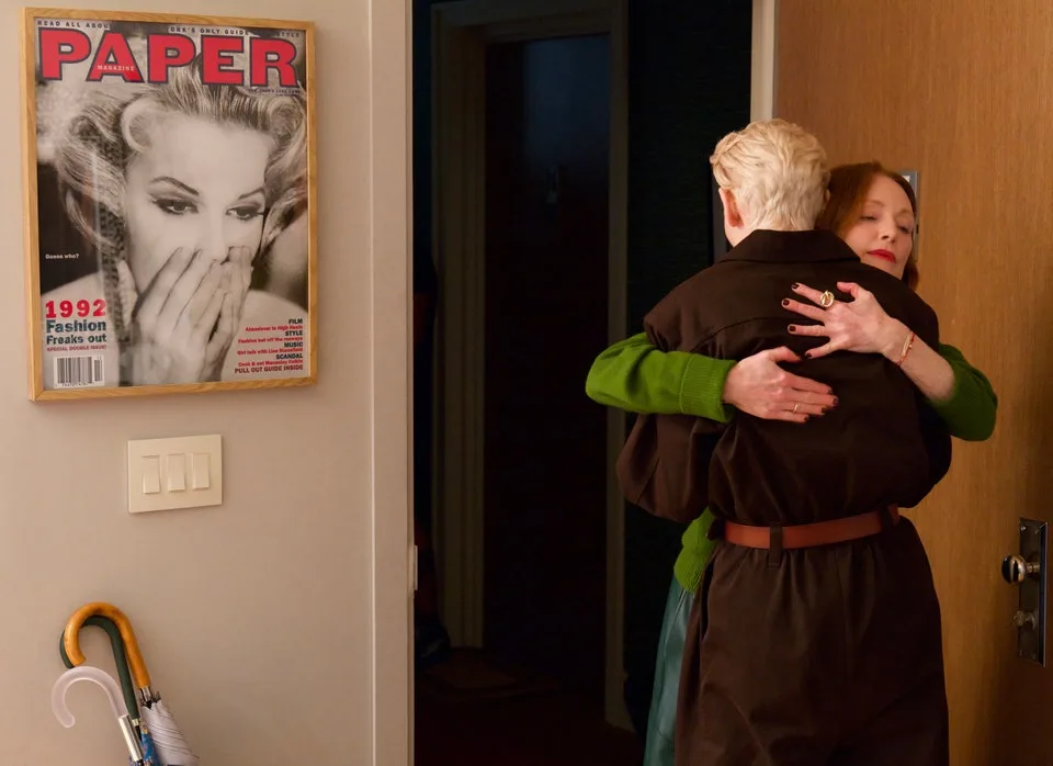 Υπάρχει μια εκπληκτική σκηνή στο The Room Next Door, όπου η Martha χάνει κάτι σημαντικό και αναποδογυρίζει το διαμέρισμά της αναζητώντας το. Παρατηρούμε τον πανικό, αλλά είναι δύσκολο να μην μας αποσπάσουν όλα τα όμορφα κομμάτια που βρίσκει: ένα άδειο κουτί με μπισκότα Dolce & Gabbana ή παλιά εισιτήρια MoMA, σπίρτα από το Fanelli’s Café στο Soho της Νέας Υόρκης και μαγνήτες ψυγείου με πίνακες του David Hockney. «Εδώ όλα επιλέγονται με πρόθεση», λέει η Casado. Σε αυτήν την εποχή της λατρείας της τάξης και του καταναγκαστικού μινιμαλισμού, είναι μια χαρούμενη ωδή στο να κολλάμε σε κάθε τι εφήμερο που δίνει γεύση στη ζωή μας και να απολαμβάνουμε την ομορφιά του.