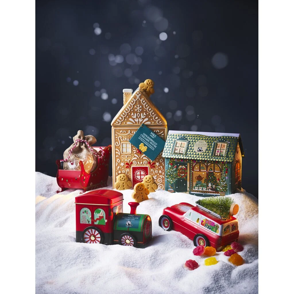 Από το μοναδικό κουτί Shortbread Projection Tree που σχηματίζει με φωτάκια το “Merry Christmas” γεμάτο με τραγανά μπισκότα shortbread με βούτυρο σε σχήμα χριστουγεννιάτικου δέντρου, μέχρι το Santa’s Workshop, μια μαγική συσκευασία με μουσική που περιλαμβάνει μπισκοτένια αστεράκια σοκολάτας, τα M&S Food προσφέρουν γιορτινές επιλογές για κάθε χριστουγεννιάτικη περίσταση.