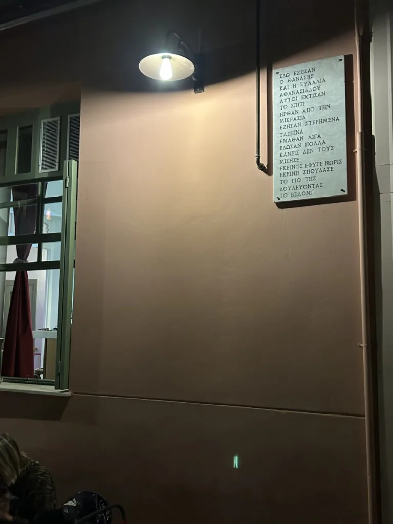 Όταν διάβασα τις μαρμάρινες επιγραφές, στην πρόσοψη, μίλησα και με την Μαίρη, την εγγονή της Ευλαλίας, που μου είπε και δύο πράγματα παραπάνω. Σε κάποιο μπλογκ, υπάρχει κι ένα άρθρο, με τίτλο «Η κυρά Ευλαλία της Γούβας», στο οποίο αναφέρεται όλη η ιστορία της Ευλαλίας (καλά, δε μιλάμε για καμιά τρελή ιστορία). Η Ευλαλία ήταν πρόσφυγας από τη Μικρά Ασία, που είχε χάσει την ακοή της. Παρόλα αυτά, εργάστηκε ως μοδίστρα, καταφέρνοντας να τα βγάλει πέρα και μεγαλώνοντας και τον γιο της (τον άνδρα της τον είχε χάσει νωρίς). Απ’ ό,τι καταλάβαμε, ήταν πολύ αγαπητό πρόσωπο στη γειτονιά. Ο κύριος Αντώνης δεν θέλησε ποτέ να «χαλάσει» αυτό το σπίτι. Όταν, φαντάσου, τού ζητήθηκε να δοθεί το κτίριο για να γίνει νηπιαγωγείο, εκείνος αρνήθηκε. Δεν ήθελε με τίποτα να καταστραφεί η ταυτότητα του συγκεκριμένου σπιτιού. Και η εγγονή της Ευλαλίας, η Μαίρη, αυτό θέλει. Της άρεσε πάρα πολύ το γεγονός ότι δε θα αλλάζαμε τίποτα.