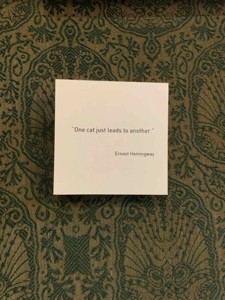 Η διαρρύθμιση αυτού του μουσείου, οι πίνακες στους τοίχους, τα αντικείμενα σε γατίσια μορφή, οι γάτες που κουρνιάζουν δίπλα σε έναν Picasso ή κάνουν μανικιούρ πάνω στα χαλιά ή ποζάρουν σα να απολαμβάνουν πως είναι το κέντρο του κόσμου, κάνουν αυτό το μουσείο ιδανικό για κάθε άνθρωπο που αγάπησε κάποτε έστω και μία γάτα στη ζωή του.