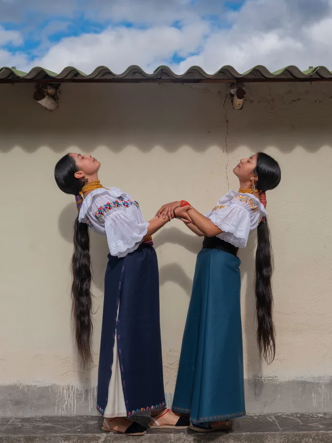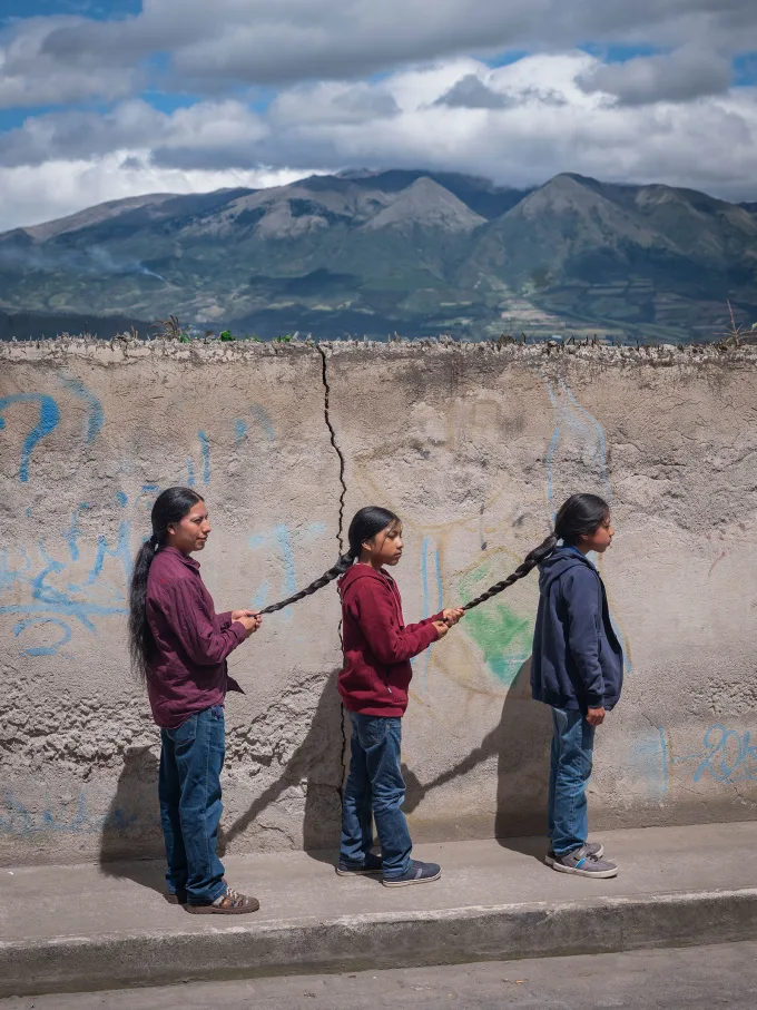 Σε μια εικόνα από το “La Resistencia”, αδελφές, ντυμένες με παραδοσιακές λευκές μπλούζες, συγκεντρώνονται σε ένα τραπέζι καθώς ο πατέρας τους πλέκει τα μαλλιά του αδερφού τους. Werning είπε ότι όταν ο πατέρας, RUMINawi Cachimuel, ήταν μικρός, η οικογένειά του έκοψε τις πλεξούδες του για να μην αντιμετωπίσει διακρίσεις στο σχολείο. Αλλά τώρα, τονίζει τη σημασία της διατήρησης των παραδόσεων Kichwa στα παιδιά του, από τα ρούχα και τη μουσική τους μέχρι τα μαλλιά τους, εξήγησε. «Παλέψαμε σκληρά για τις πλεξούδες μας· ήταν ένας μακρύς αγώνας για να δείξουμε περήφανα τις πλεξούδες μας», είπε ο Cachimuel στη Werning σε μια μεταφρασμένη συνέντευξη. «Ως άνθρωποι, έχουμε υπομείνει σημαντικές δυσκολίες. Τώρα, διδάσκω στα παιδιά μου ότι πρέπει να μάθουν από τους προγόνους μας και να μεταδώσουν στις μελλοντικές γενιές τι σημαίνει να είσαι Kichwa».