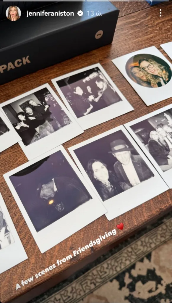 Η ηθοποιός των Friends, έδωσε στους θαυμαστές της μια γεύση από την ετήσια εορταστική της συγκέντρωση μέσω των Instagram stories της το βράδυ της Δευτέρας, μοιράζοντας «μερικές σκηνές» από το γεμάτο αστέρια δείπνο της. Μεταξύ των διάσημων προσώπων που παρευρέθηκαν στην ετήσια εκδήλωση της Aniston πριν από την Ημέρα των Ευχαριστιών φέτος ήταν η επί χρόνια φίλη και συμπρωταγωνίστριά της Courteney Cox, και άλλοι.