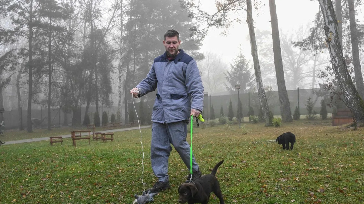 Ένα κρύο, ομιχλώδες πρωινό, ο Hejny και ο Kolar έβαλαν τα 2 μηνών κουτάβια Labrador Retriever σε ένα λουρί και τα χώρισαν για να δείξουν τι είχαν μάθει από τότε που έφτασαν την 1η Νοεμβρίου. Τα σκυλιά – που είναι αδέρφια – μένουν με τους κρατούμενους τις περισσότερες φορές. Ενώ το κουτάβι του Hejny, ο Δίας μπορεί να καθίσει και να δώσει το πόδι, ο Zirkon μυρίζει γύρω του, κουνώντας την ουρά του χαρούμενα. «Είναι πολύ διάβολος και θα είναι δύσκολο», είπε ο Kolar, αγκαλιάζοντας τον σκύλο καθώς καθόταν σε ένα κρεβάτι στο σπίτι της φυλακής.