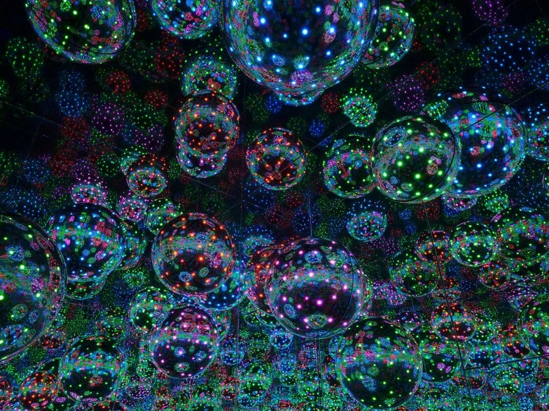 Η Κουσάμα δημιούργησε την πρώτη της αντίστοιχη αίθουσα τη δεκαετία του 1960, με τους καθρέφτες να πολλαπλασιάζουν τις κουκκίδες που κάλυπταν τους πίνακές της.