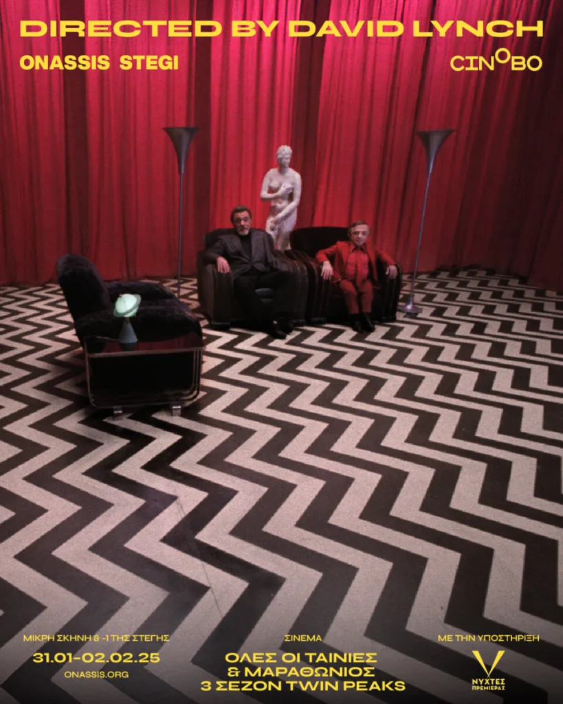 H Στέγη του Ιδρύματος Ωνάση και το Cinobo παρουσιάζουν ένα τριήμερο-κατάβαση στον μαγικό και μυστηριώδη κόσμο του David Lynch, μέσα από όλες τις ταινίες του και έναν μαραθώνιο τριών σεζόν “Twin Peaks”. Ένα ευχαριστώ για τα όνειρα και τους εφιάλτες που μας χάρισε. Με την υποστήριξη από τις «Νύχτες Πρεμιέρας».