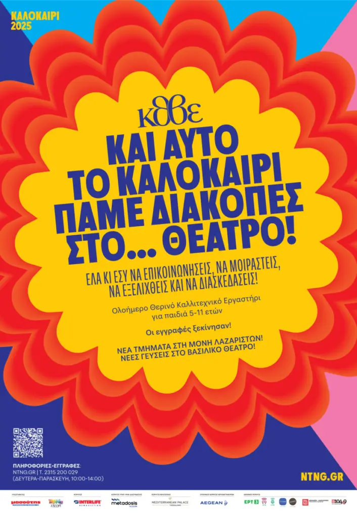 Αυτό το καλοκαίρι, οι μικροί συμμετέχοντες των καλλιτεχνικών εργαστηρίων θα επινοούν κάθε εβδομάδα τη δική τους παράσταση. Από τις 16 Ιουνίου έως τις 18 Ιουλίου και από τις 18 Αυγούστου έως τις 5 Σεπτεμβρίου 2025, το Θέατρο ανοίγει την αγκαλιά του και προσκαλεί τους λιλιπούτειους θεατρόφιλους σ’ έναν κόσμο έκφρασης, φαντασίας και δημιουργίας.