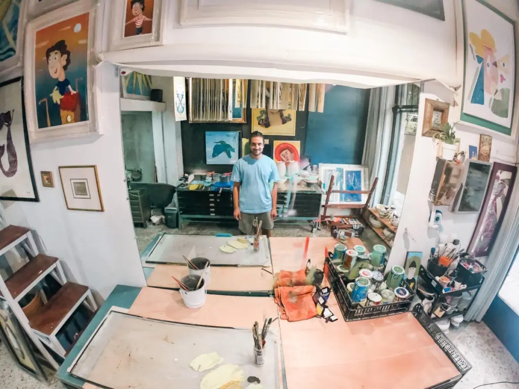 Από πολύ μικρή ηλικία ξεκίνησε σε δημόσιους χώρους να εκφράζεται μέσω της ζωγραφικής. Έκανε γκράφιτι, ζωγράφιζε πρόσωπα και σχεδίαζε οτιδήποτε άλλο μπορούσε να εκφράσει με τα χρώματά του. Στη συνέχεια, ολοκλήρωσε τις σπουδές του στο τμήμα Πολιτικών Μηχανικών Τ.Ε Πάτρας και συνέχισε με το να εργαστεί για λίγο καιρό σε αρχιτεκτονικό γραφείο που αποτύπωναν αρχαίους ναούς και μνημεία σε όλη την Ελλάδα. Ασχολήθηκε με το θέατρο, τα σκηνικά, παραγωγές, ζωγραφική. Συμμετείχε σε εκθέσεις και ταυτόχρονα έχει ζωγραφίσει πάνω από 300 σχολεία σε όλη τη χώρα. Όσο για το τελευταίο, σημειώνει πως αποτελούν κι αυτές οι ζωγραφιές ένα είδος τέχνης που συνομιλεί με τον δημόσιο χώρο. «Αυτή η δράση όχι μόνο προσθέτει μια διαφορετική αίσθηση στα σχολεία, αλλά τα βλέπει να εντάσσονται στο κλίμα της πόλης κάτι που λειτουργεί ταυτόχρονα και για τους μικρούς αλλά και για τους μεγάλους. Είναι πολύ σημαντικό να υπάρχει μία μορφή έκφρασης μέσα στην πόλη που να εκφράζει το σημείο που βρίσκεται, γιατί αντίστοιχα όπως στα σχολεία, έτσι και σε μια κεντρική πλατεία μπορεί μια ζωγραφιά να περνάει μηνύματα της καθημερινότητας αλλά και όσον αφορά σε θέματα ηθικής και αξιών, που έτσι να τα εντοπίζουμε και να μην τα αφήνουμε να χάνονται στην πάροδο του χρόνου».