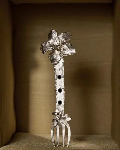 Πολλοί καλλιτέχνες έχουν αναδειχθεί στον σχεδιασμό μαχαιροπίρουνων όλα αυτά τα χρόνια. Το 1966 η Claude Lalanne σχεδίασε τα εμβληματικά της ασημικά Iolas—πλήρη σετ με πιρούνια, μαχαίρια, κουτάλια, εργαλεία για την κατανάλωση ψαριών και μαχαίρια κέικ—σε ένα σχέδιο που αναμείγνυε πλεγμένα φύλλα με μοτίβα καρκινοειδών. Αν αυτό ακούγεται σαν κάτι που θα έκανε ο Dalí, ο ίδιος ο σουρεαλιστής δημιούργησε ασημένια επιχρυσωμένα μαχαιροπίρουνα, συμπεριλαμβανομένου ενός πιρουνιού που μοιάζει με ελέφαντα με τρία δόντια και δύο ρουμπινί μάτια. Στη δεκαετία του 1930, ο κύριος της τέχνης σε κίνηση, Alexander Calder, έβαλε τη δική του σφραγίδα σε σκεύη με σετ από ορείχαλκο, σίδερο και ασημένιο σύρμα.