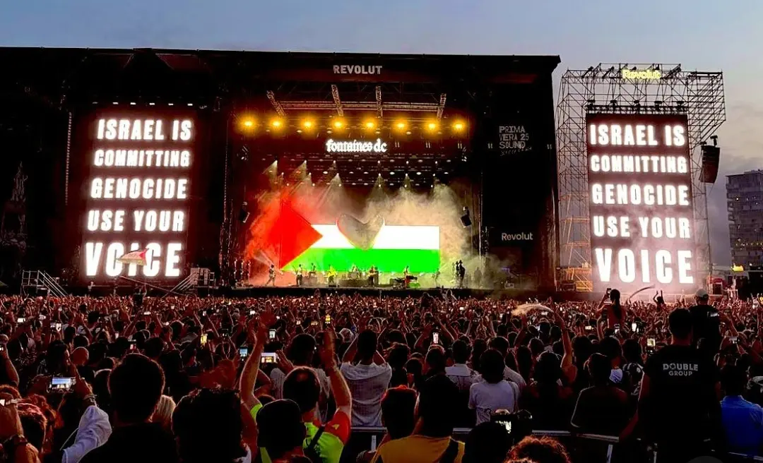 Την τελευταία βραδιά του ισπανικού φεστιβάλ, στο οποίο συμμετείχαν επίσης οι Charli XCX, Chappell Roan και Sabrina Carpenter, το ιρλανδικό post-punk συγκρότημα έκανε ίσως τη μεγαλύτερη επίδειξη αλληλεγγύης στους κατοίκους της Γάζας από οποιονδήποτε άλλον από τους κύριους καλλιτέχνες της φετινής εκδήλωσης. Εκτός από τα πανό με την ένδειξη “Free Palestine” το συγκρότημα πρόβαλε επίσης το μήνυμα «Το Ισραήλ διαπράττει γενοκτονία, χρησιμοποίησε τη φωνή σου», το οποίο εμφανίστηκε κατά τη διάρκεια του τραγουδιού, όπου οι στίχοι αναφέρονται συγκεκριμένα στη γενοκτονία και τους μαζικούς τάφους.