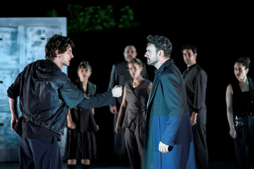 Ο πόλεμος τελείωσε. Οι νεκροί περισυλλέγονται κάτω από το σκληρό φως των προβολέων. Το πεδίο της μάχης μεταφέρεται στα γυαλισμένα γραφεία των σύγχρονων κέντρων λήψης αποφάσεων. Ο σκληρός, ενισχυμένος ήχος του σήμερα και η εύθραυστη ανάσα της ζωντανής φωνής, τα ατσαλάκωτα κοστούμια και τα ράκη, τα μηχανοποιημένα και τα βεβηλωμένα σώματα συνθέτουν έναν κόσμο όπου οι συγκρούσεις οξύνονται και οι αντιθέσεις βαθαίνουν.