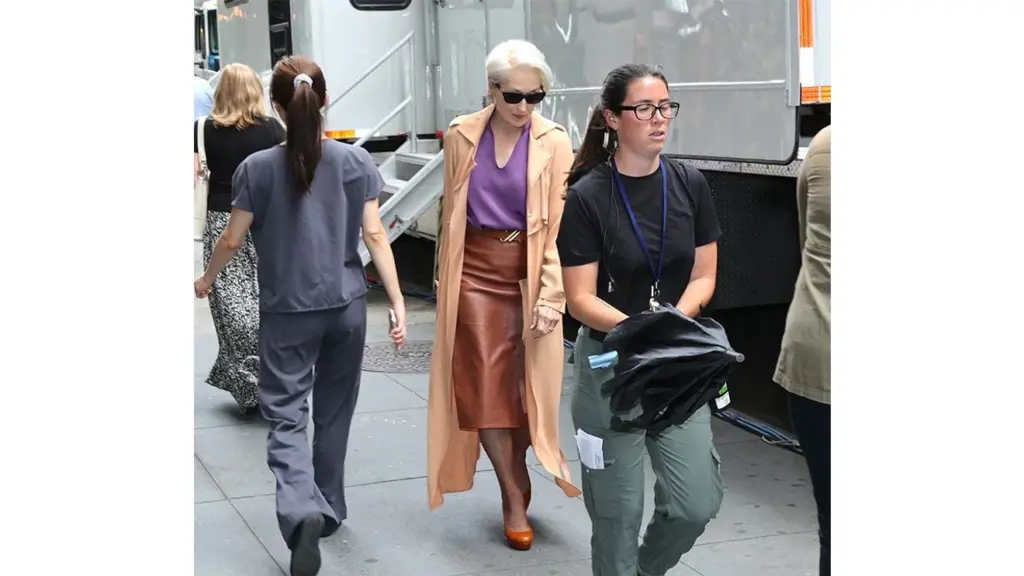 Στις πρώτες εικόνες από τα γυρίσματα που πραγματοποιήθηκαν στις 23 Ιουλίου στη Νέα Υόρκη, η 76χρονη Meryl Streep αιχμαλωτίζει τον φακό με μια παρουσία που δεν αφήνει περιθώριο αμφιβολίας: η Miranda Priestly είναι εδώ. Φορά trench coat, καφέ pencil φούστα, μοβ μεταξωτή μπλούζα και – φυσικά – το απόλυτα αυστηρό λευκό χτένισμα της. Η βασίλισσα του Runway επέστρεψε και είναι πιο σικάτη και αμείλικτη από ποτέ.