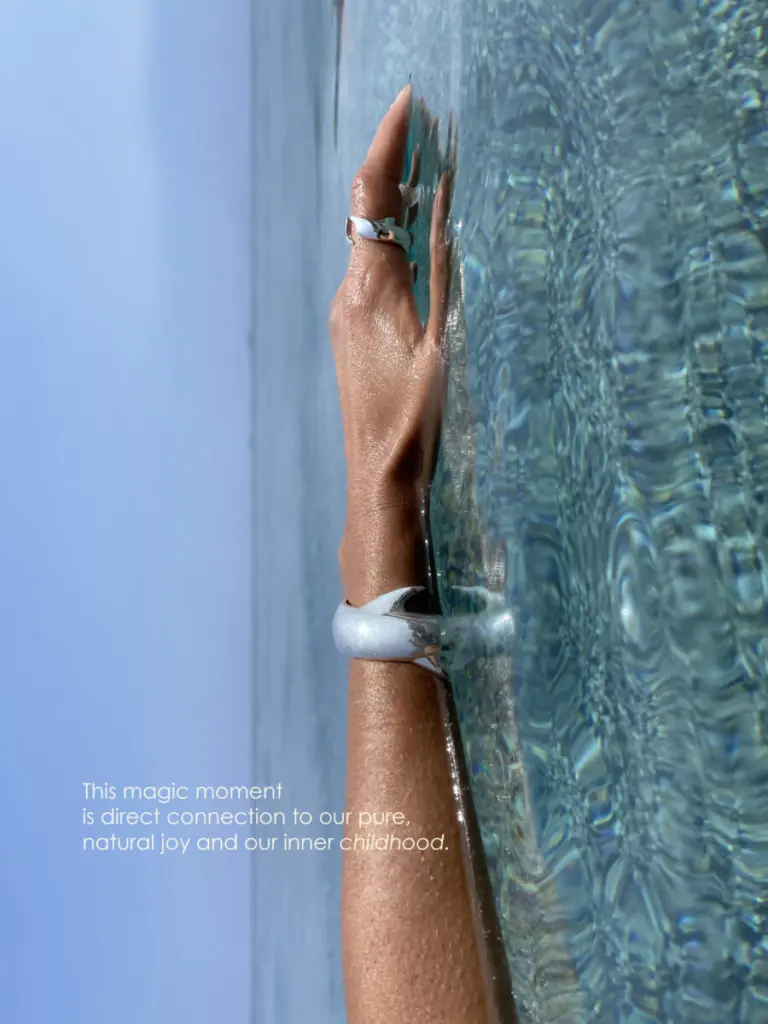 Να δημιουργηθεί ένα κόσμημα με ανάλαφρη δομή και γεωμετρικό σχεδιασμό, μίνιμαλ – πιστό στην αισθητική του brand- εισάγοντας, ωστόσο, κάτι νέο, κάτι φρέσκο. Την κίνηση και τη ζωή. Αν και απαιτητικά στην κατασκευή τους -όπως το βραχιόλι και το δαχτυλίδι- η οργανική μορφή του, η πρώτη από την απαρχή του brand – ήρθε να ορίσει για εμάς μια νέα εποχή.