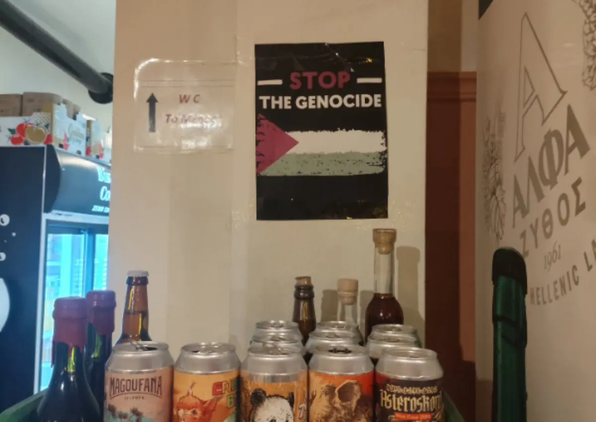Άρχισε να ουρλιάζει προς τους άλλους πελάτες να μην ξανάρθουν στην ταβέρνα γιατί είμαστε ρατσιστές ενάντια στους Εβραίους. Ανταπαντήσαμε ότι αυτοί είναι υποστηριχτές γενοκτονίας και εγκληματιών πολέμου και ότι στηρίζουμε τις μαζικές διαδηλώσεις των Ισραηλινών ενάντια στη γενοκτονία.
