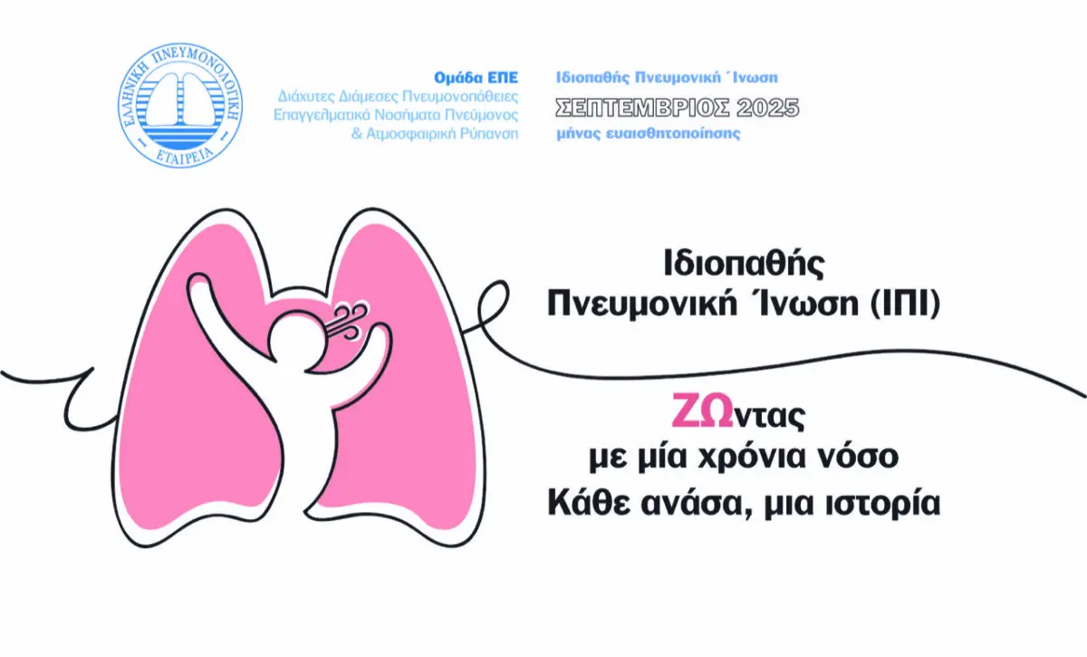 Η Ιδιοπαθής Πνευμονική Ίνωση (ΙΠΙ), μια σπάνια και δύσκολη νόσος, που επηρεάζει τις ζωές χιλιάδων ανθρώπων, βρίσκεται στο επίκεντρο μιας σημαντικής καμπάνιας ενημέρωσης. Για τέταρτη συνεχή χρονιά, η Ελληνική Πνευμονολογική Εταιρεία (ΕΠΕ), με το κεντρικό μήνυμα «ΖΩντας με μία χρόνια νόσο – Κάθε ανάσα, μια ιστορία», αναδεικνύει τις ανθρώπινες πτυχές της ασθένειας, δίνοντας βήμα στους ασθενείς, τους φροντιστές και τους γιατρούς.