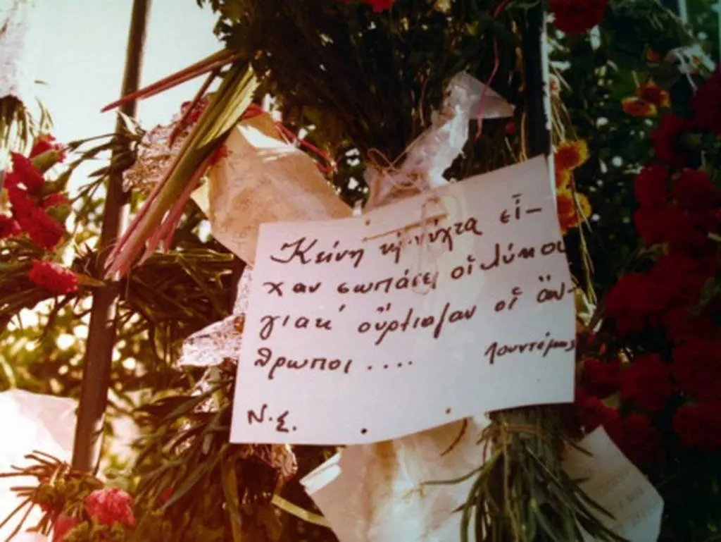 Οι τοίχοι φέρουν σύνθημα: «ΕΑΜ – ΕΛΑΣ – ΠΟΛΥΤΕΧΝΕΙΟ». Ο κόσμος στην Πατησίων συνεχίζει να συγκεντρώνεται, συλλογικότητες φέρνουν στεφάνια και πανό, λευκά κεριά ανάβουν στη μνήμη όσων έπεσαν. Συγγενείς των θυμάτων και πολίτες όλων των ηλικιών αφήνουν δάκρυα μπροστά στα στραπατσαρισμένα κάγκελα που κατεδάφισε το τανκ, ένα χρόνο πριν.