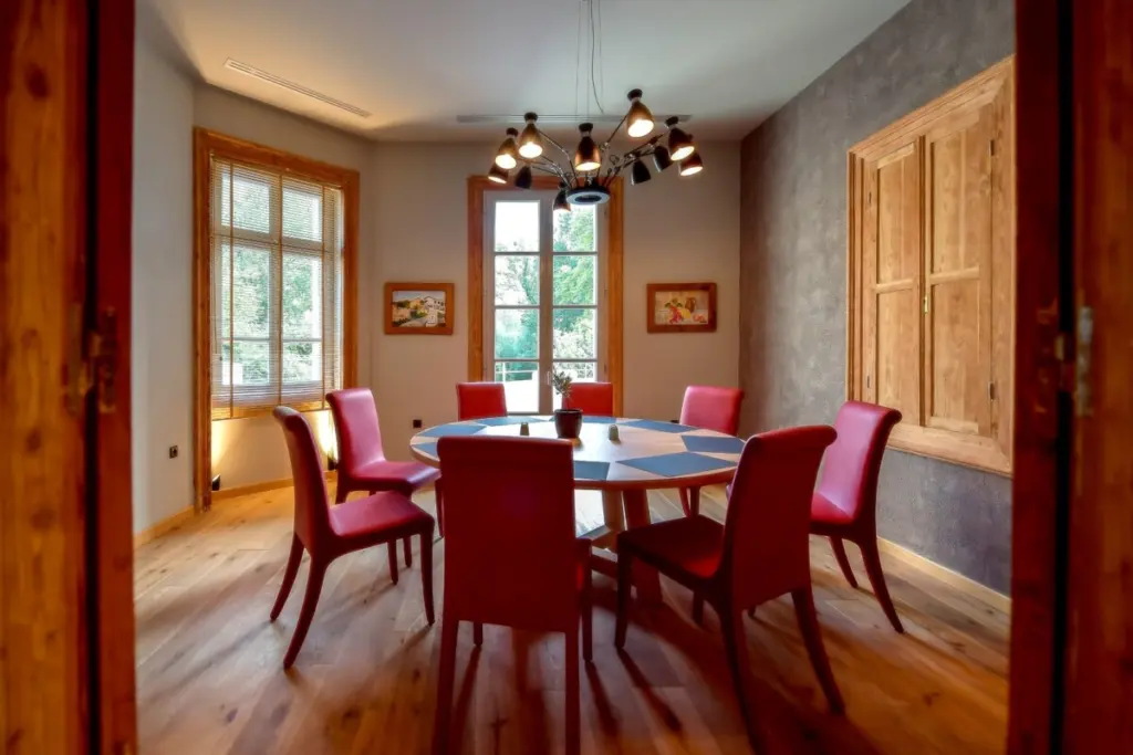 Κατά την ανακατασκευή του κτηρίου υπήρξε απόλυτος σεβασμός στον ξύλινο εσωτερικό και εξωτερικό χαρακτήρα του. Στο ξενοδοχείο ηγεμονεύουν πέτρα και ξύλο του 20ού αιώνα, που δένουν αρμονικά με τη σύγχρονη αισθητική του minimal design και τα επιβλητικά έργα τέχνης.
