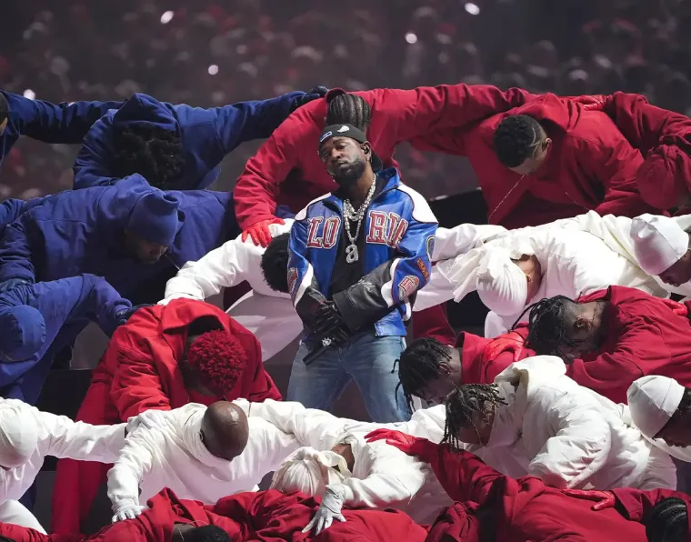 Το φετινό σόου του Super Bowl δεν ήταν αυτό που θα λέγαμε μοντέρνο, με τον headliner Kendrick Lamar να κρατά τα πράγματα απλά με ένα ανάποδο καπέλο και ένα μπουφάν σε στυλ τζάκετ μοτοσικλέτας.
