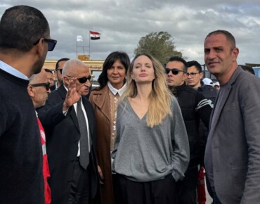 Η ηθοποιός επισκέφθηκε την αιγυπτιακή πλευρά των συνόρων με τη Γάζα και συναντήθηκε με μέλη της Ερυθράς Ημισελήνου.