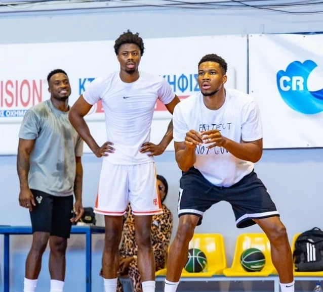 Μια νέα σειρά στιγμιοτύπων από το γήπεδο μοιράστηκε ο Γιάννης Αντετοκούνμπο, αυτή τη φορά από ένα παιχνίδι μπάσκετ με τα αδέρφια του, Θανάση και Κώστα, σε ελληνικό γήπεδο. Ο MVP του NBA επέλεξε να φορέσει, για την περίσταση, ένα T-shirt με ανθρωπιστικό και αντιπολεμικό μήνυμα στα αγγλικά: «Προστατεύστε τα παιδιά,…
