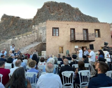 Η κατοικία του Γιάννη Ρίτσου, ένα αρχιτεκτόνημα με ιστορία που ανάγεται στους μεταβυζαντινούς χρόνους, βρίσκεται δίπλα στην κεντρική πύλη της Καστροπολιτείας, στον ενεργό πυρήνα της Κάτω Πόλης. Με τις, κατά καιρούς, επεμβάσεις που φέρει, κυρίως από τα τέλη του 19ου έως και τον 20ό αιώνα, η οικία διατηρεί έντονα τα χαρακτηριστικά της αρχιτεκτονικής και κοινωνικής ιστορίας του τόπου.