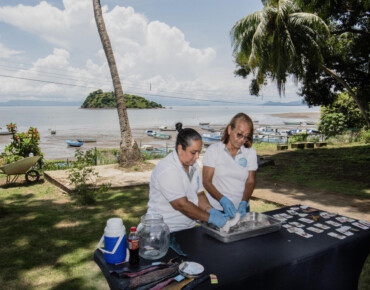 Σε μια παραλία στην Κόστα Ρίκα, καθώς οι ψαράδες συγκεντρώνουν τα αλιεύματα της ημέρας, δύο γυναίκες εργάζονται σκληρά πάνω σε ένα δέρμα από λαβράκι, που το τρίβουν, ξύνουν, πλένουν και μαυρίζουν για να το μετατρέψουν σε δέρμα.
